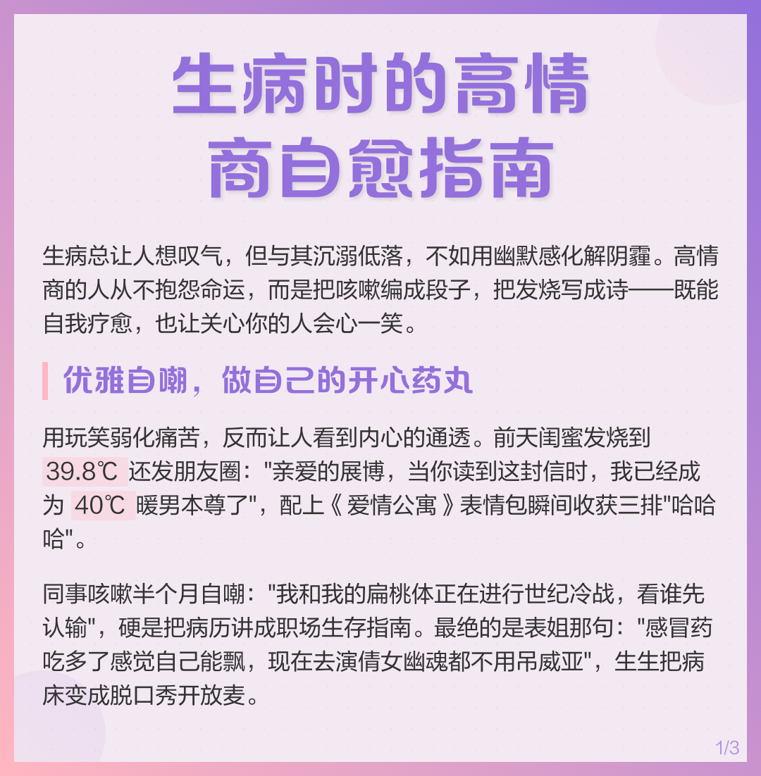 核心建议表达真诚关心+共情引导+实际帮助,比单纯安慰更能拉近距离 当女生透露生病时,首先要避免三种“直男误区”用“多喝热水”敷衍以自身经历转移话题如“我上次感冒两天就好了”,或是居高临下指导用药如“你该吃XX药”这类回复容易让她感觉未被重视 1 第一层情绪共鸣 优先回应她的疲惫。