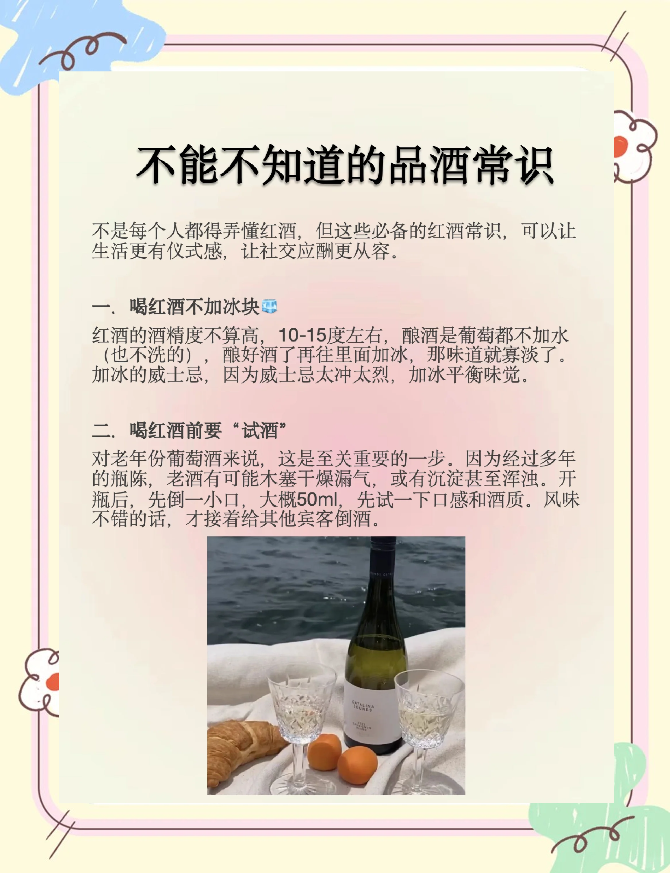 2、红酒需要醒酒主要是为了去除杂质软化单宁以及释放香味以下是详细解释去除杂质红酒在储存过程中,由于平放或倾斜放置,可能会产生沉淀物,如橡木瓶塞渣等这些杂质如果直接随酒液进入杯中,会使酒质变浑浊,影响饮用体验因此,醒酒过程中,这些杂质会沉淀在瓶底,避免被倒入杯中软化单宁单宁是红酒中的重要成分,对口感有;4 去除异味红酒生产过程中可能添加了适量的二氧化硫以达到杀菌效果随着时间的推移,二氧化硫可能产生不愉快的硫臭味醒酒有助于这些异味挥发,改善口感醒酒时间指南醒酒的时间应根据红酒的储存时间来决定通常,储存时间较长酒龄较老的红酒需要醒酒30分钟至1小时而储存时间较短酒龄较轻的红酒;醒酒的目的是让葡萄酒透透气,吸收氧气,充分的氧化,释放迷人的香气,降低涩味,使酒的口感柔和,醇厚同时也可过滤一些年份酒的滤沉淀物对于年份不久的红酒,陈酿时间比较短,是最需要醒酒的经过微氧化醒酒的动作,将可使年轻红酒中单宁更加柔顺同时由于年轻的红酒窖藏时间不长,在瓶中氢化的时间少。