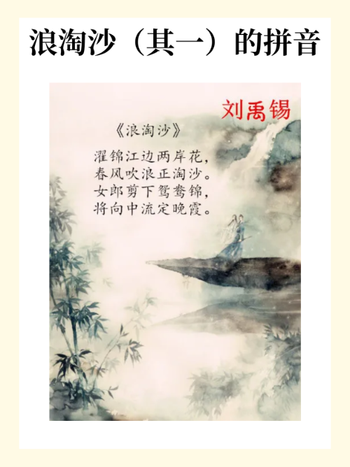 浪淘沙其一原文九曲黄河万里沙,浪淘风簸自天涯如今直上银河去,同到牵牛织女家注释浪淘沙唐教坊曲名创自刘禹锡白居易,其形式为七言绝句后又用为词牌名九曲自古相传黄河有九道弯形容弯弯曲曲的地方很多万里沙黄河在流经各地时挟带大量泥沙浪淘风簸黄河卷着泥沙。