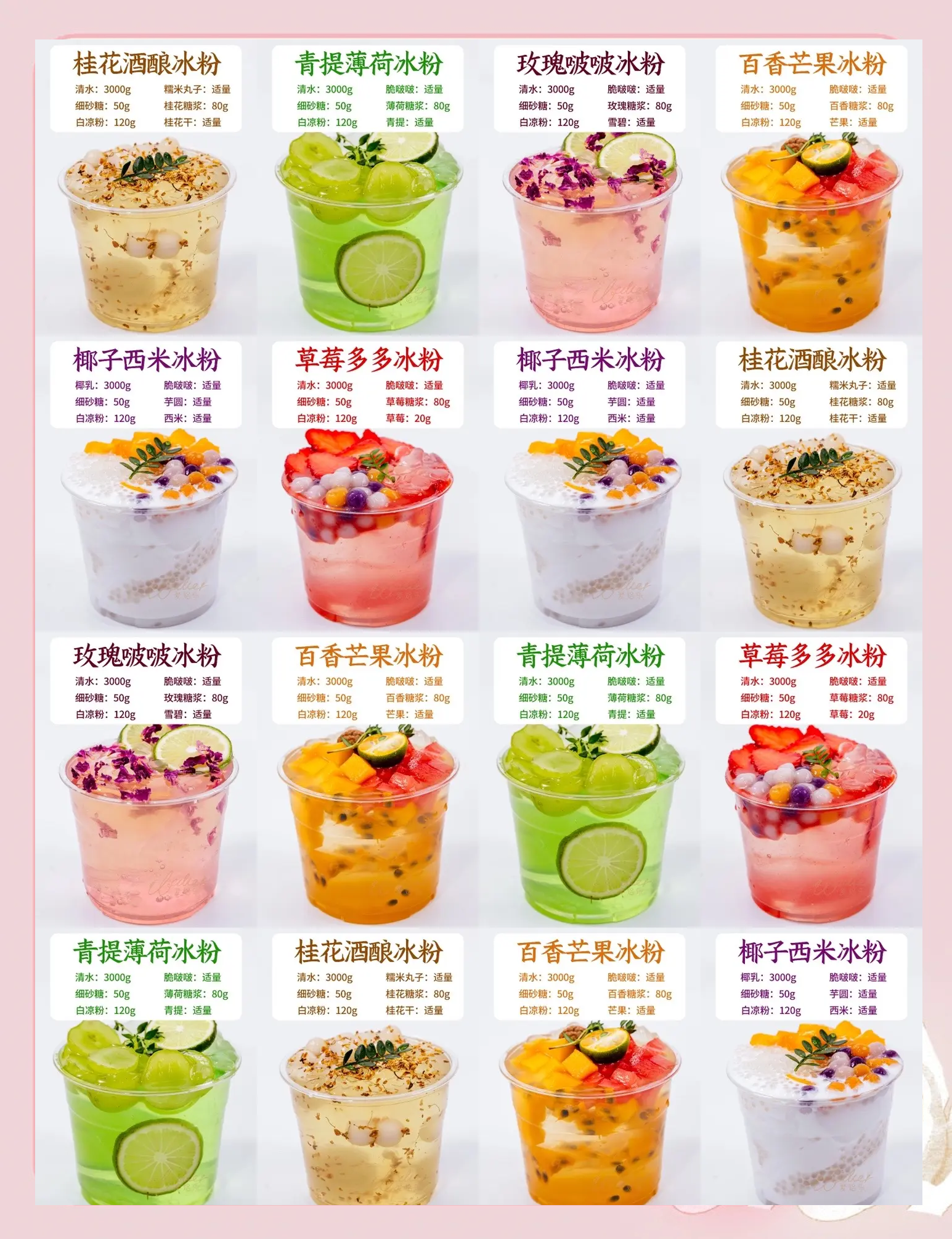 2、四川冰粉的做法与配方如下配方 冰粉15g 清水1000g 黑白芝麻适量 熟花生适量 葡萄干适量 蔓越莓干适量 红糖水适量 制作步骤1 准备材料称出15g的冰粉备用2 烧开水将1000g的清水烧开,并倒入盆中3 溶解冰粉把称好的冰粉倒入烧开的开水中,并快速搅拌三分钟,直至;四川特色小吃冰冰粉的制作方法首先,将200克凉开水与5克石灰混合,并均匀搅拌完成后,放置一旁静置半小时,让两者充分反应接下来,将冰粉籽装入布袋中,并牢固系好将布袋放入1500克凉开水中,双手轻轻用力搓揉约10分钟,直至感觉布袋中的冰粉籽变得顺滑此时,将静置好的石灰水慢慢倒入搓好的。