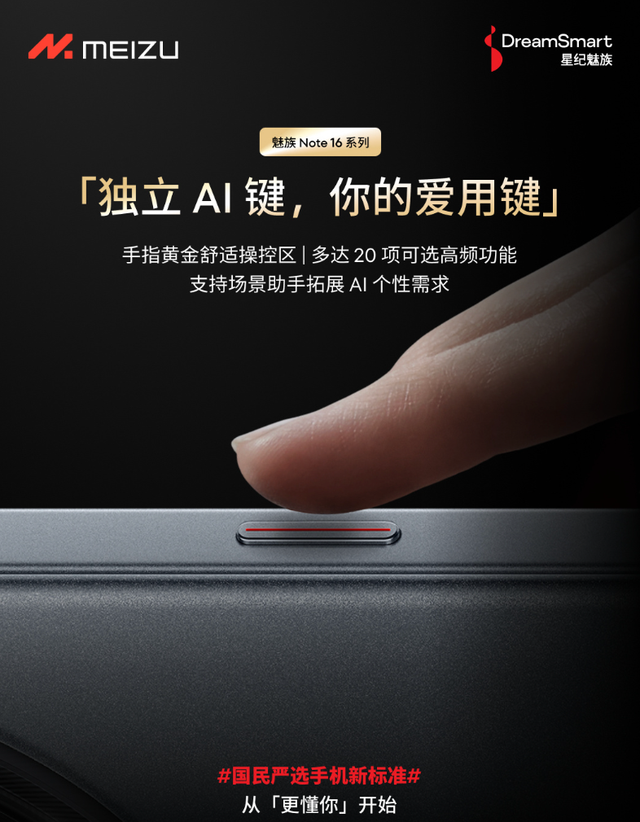 结合官方信息来看,魅族 Note 16 系列的这颗独立 AI 键能提供20项可选高频功能,支持场景助手拓展AI个性需求。同时,轻按即可开启 Aicy 对话,长按识别屏幕并加入快速收藏。