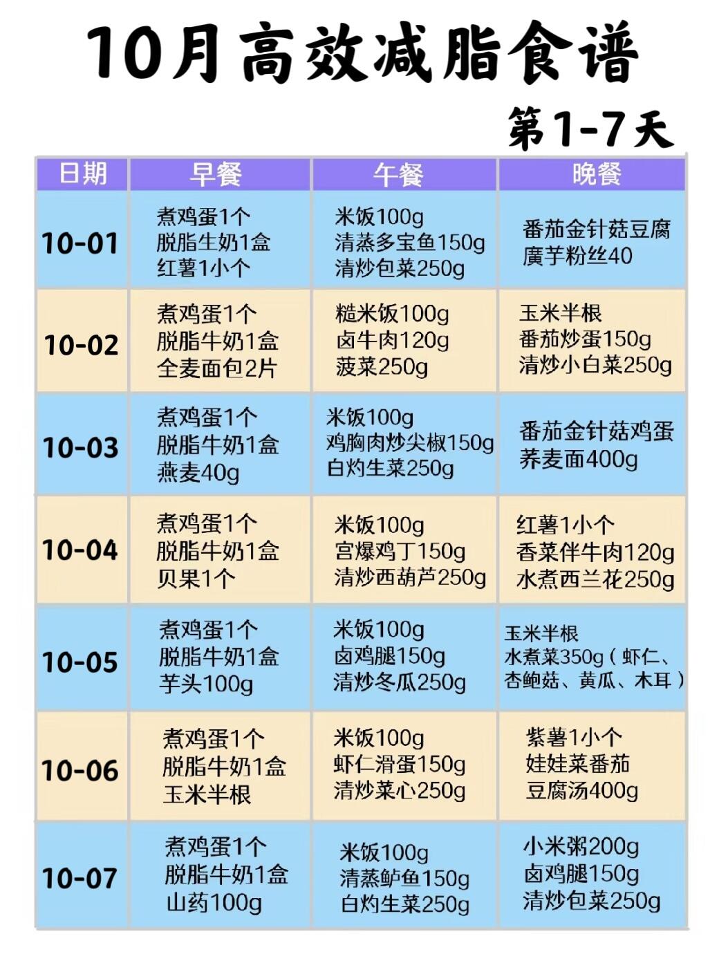 一周减肥食谱目标健康减重要实现一周内显著减重如瘦10斤,需要强调的是,健康减肥应循序渐进,过快的减重速度可能对身体造成不良影响以下食谱旨在提供健康均衡的饮食建议,结合适量运动,帮助你在一周内健康减重,但具体减重效果因人而异请根据自身身体状况和实际需求调整饮食计划,并在必要时咨询专业营养师或医生的意见第。