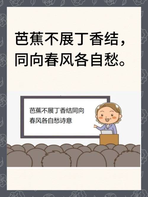 14、释义芭蕉叶未展开,丁香花蕾紧束,二者皆在春风中独自承载着各自的忧愁赏析诗人运用春风作为背景,对比芭蕉与丁香的未展状态,隐喻着彼此分离的哀愁通过这种细腻的比喻,诗句将芭蕉和丁香的物理状态与人的情感巧妙结合,加深了读者对愁绪共鸣的理解3 一从恨满丁香结,几度春深豆蔻梢李吕。