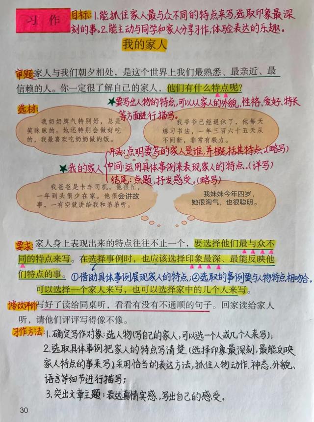 四年级语文上册,第二单元《我的家人》习作范文10篇,收藏备用