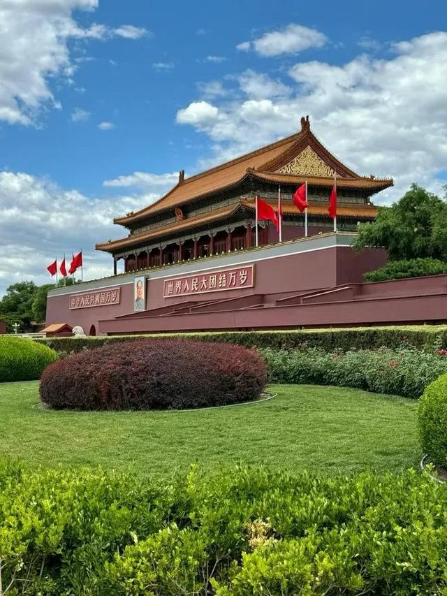 广场四周,人民大会堂、国家博物馆、人民英雄纪念碑等建筑巍然屹立,每一座都有着独特的历史和文化意义。天安门城楼坐北朝南,俯瞰整个广场,是游客拍照留念的热门背景。