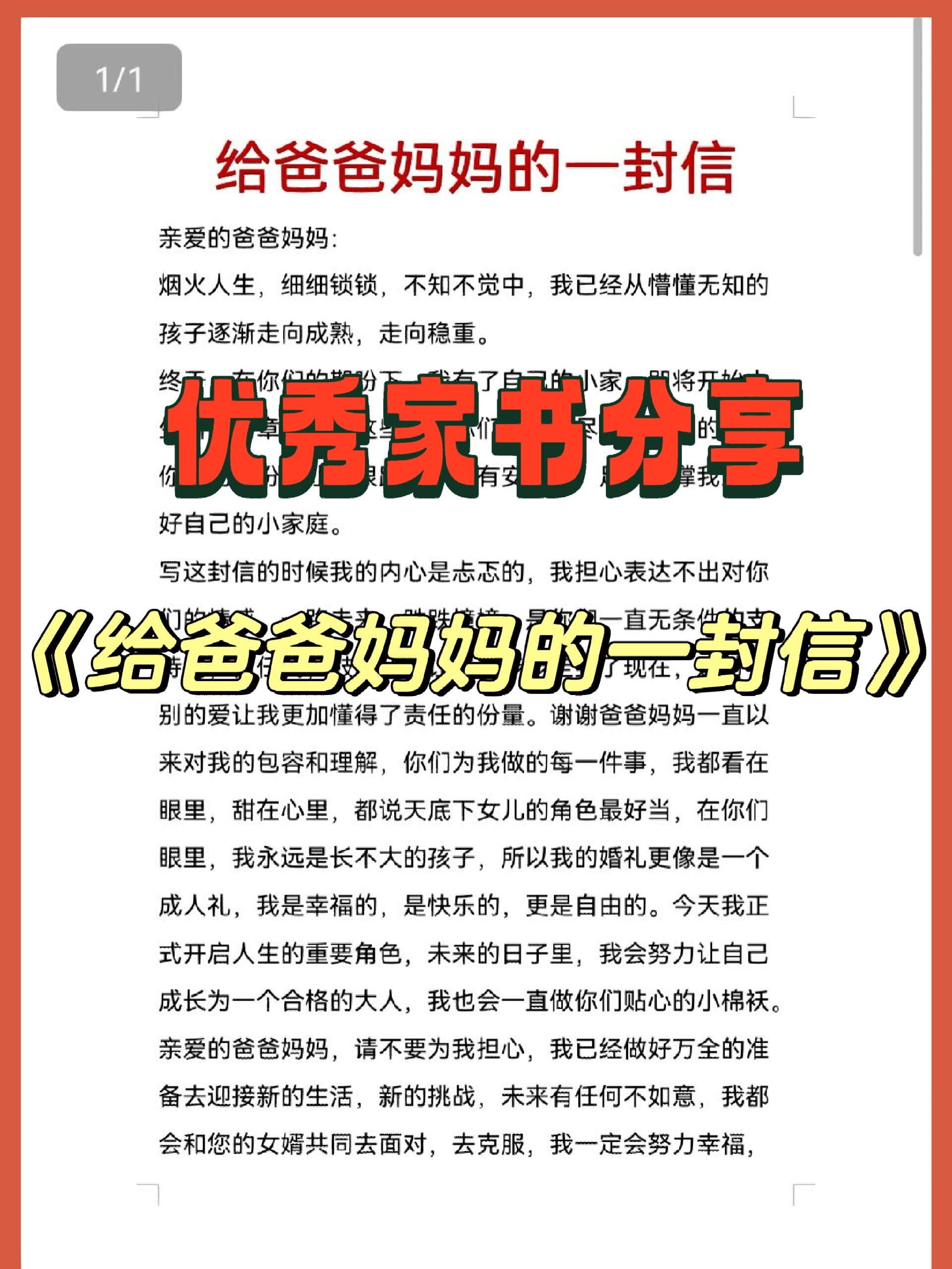 5、致父母的一封信_写给爸爸妈妈的信200字 亲爱的爸爸妈妈您们好因为我从没写过信,所以这次我要写一封信给您们,写信我只是想和您们谈谈家规诚实记得有一次,我买完早餐的钱忘了给您们,到了中午,我就把钱拿来买零食到了第二天,您们想起来了,问我钱去哪里了,我假装摸口袋,然后。