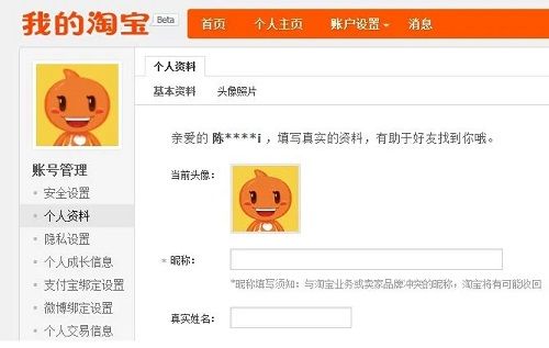 15、在手机淘宝上修改,点击我的淘宝淘宝昵称,输入新的昵称,点击保存即可在网页淘宝上修改,登录淘宝网,点击左上角淘宝会员名处,点击账号管理个人资料,输入新的昵称,点击保存即可具体介绍如下手机淘宝1打开淘宝app,点击右下角的我的淘宝2进入个人页面,点击上方。