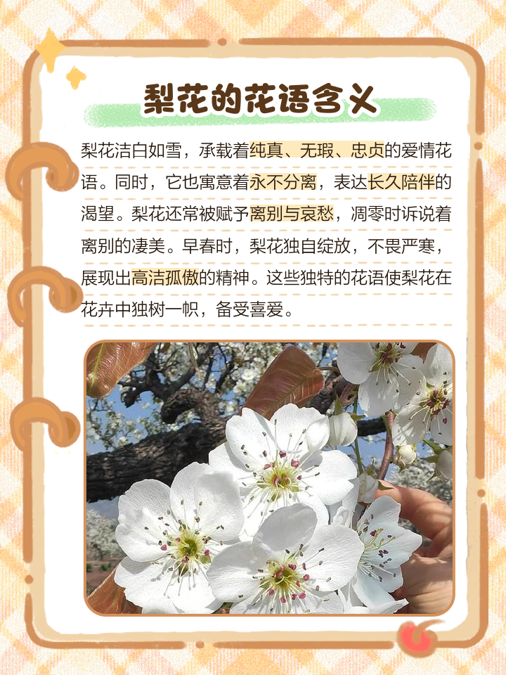 8、梨花什么季节开梨花通常会在春季开花,一般是在35月份左右开放所在地区不同,开花时间也会受到影响,适当的延后或者提前都是很正常的正常情况下,南方地区3月份就开花了,而北方地区早的是在4月份,晚的要到5月份才开放但是,如果说经过了特殊的处理,开花时间就很难说了不管开花时间早晚。