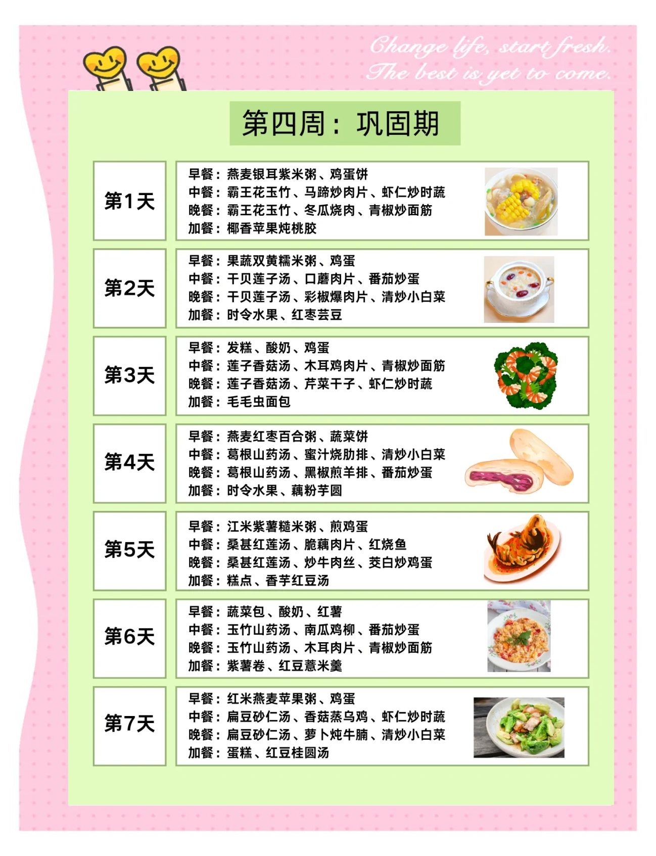 以下是一份适合产后减肥的一日三餐食谱早餐方案一酸奶一杯,葡萄干10颗,全麦面包两片酸奶富含蛋白质和益生菌,有助于肠道健康葡萄干提供天然糖分和矿物质全麦面包富含膳食纤维,增加饱腹感方案二豆浆一碗全麦面包两片鸡蛋一个豆浆是优质植物蛋白来源,鸡蛋提供动物蛋白,两者结合。