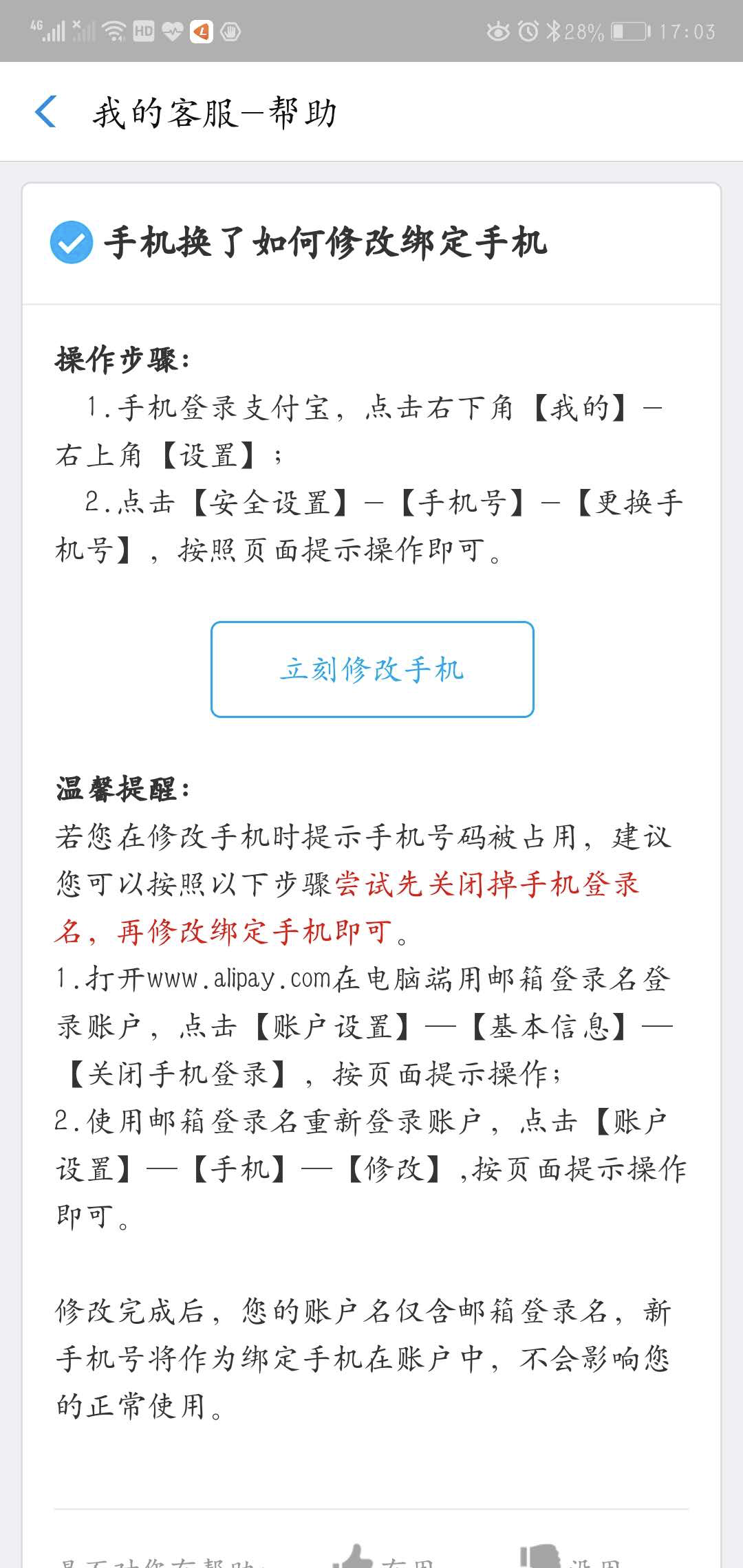 16、你好,更改路径如下打开手机支付宝,点击右下角我的,然后点击右上角齿轮图标即设置,如下图 然后依次点击账号与安全手机号,点击进入后,再点击更换手机号,如下 然后再按照页面提示,输入新更换手机号,按照页面提示要求完成操作即可完成望采纳,谢谢。