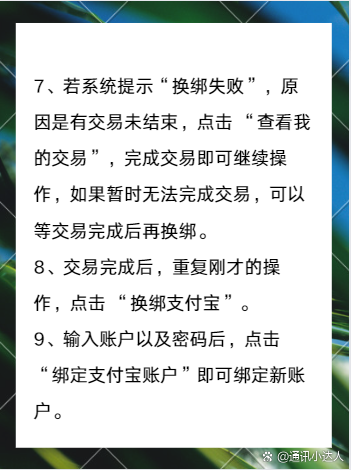 7、修改支付宝银行卡预留手机号的方法非常简单,只需按照以下步骤操作即可打开支付宝APP确保你的手机上已经安装了最新版本的支付宝APP进入个人中心登录支付宝后,点击右下角的“我的”按钮,进入个人中心页面找到设置选项在个人中心页面,点击右上角的齿轮图标,进入设置界面进入安全设置在设置。