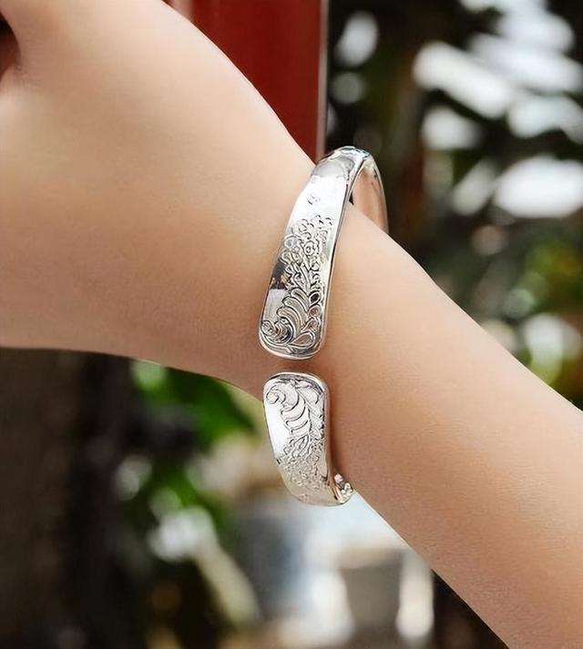 8、据老一辈人讲左手戴金,右手戴银,左进右出,银手镯有排毒的功效,因此银手镯排毒应该戴在右手长期佩戴银手镯的女人体质会比一般人温润,身体的寒气会慢慢减少。