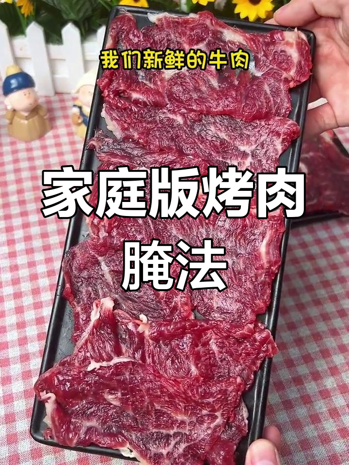 腌制配方以500克牛肉为例1 选肉 #9989 首选 牛里脊最嫩或 牛肋条肥瘦相间,烤后多汁,逆纹理切23厘米的块2 嫩肉关键 # 酸性物质1勺柠檬汁或菠萝汁天然嫩肉酶# 小苏打14茶匙不可多,否则发苦# 水淀粉1勺玉米淀粉+2勺。