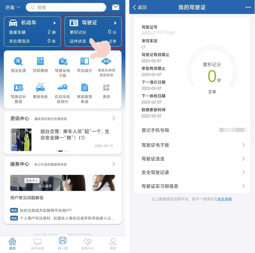 app软件 2进入首页如果显示不是首页,可以点击左下角的“首页”选项 3点击右上角“驾驶证” 4可以看到自己“累计计分” 5在累计计分左边,可以看到自己的积分清零时间“下一清分日期”这样就知道自己的计分情况,以及是否到清零日期没有 最后补。