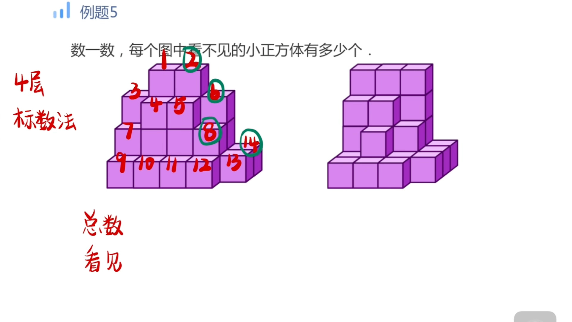 典型问题数一数,下图中共有多少个正方形典型思路分析图1中,由一个基本正方形组成的正方形有10个,由四个基本正方形组成的正方形有4个,图1中共有14个正方形图2中,由一个基本正方形组成正方形有9个,由四个基本正方形组成正方形有4个,由9个基本正方形组成正方形有1个,图2中共有。