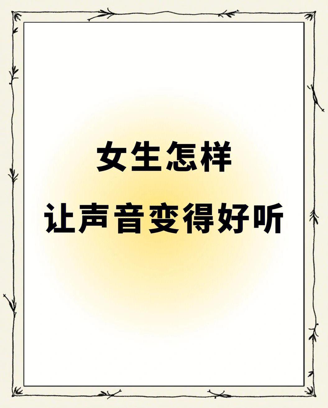 2、女生“控声有度,高低适宜声若含糖,蜜语甜言”的声音算是好听好声音的标准如下1字正腔圆,吐字清晰发音要尽量做到标准,不要说方言版的,要字正腔圆2控声有度,高低适宜讲话声音不要太大,也不要太低,以对方对声音的感知度为准3声若含糖,蜜语甜言讲话声音甜美,充满。