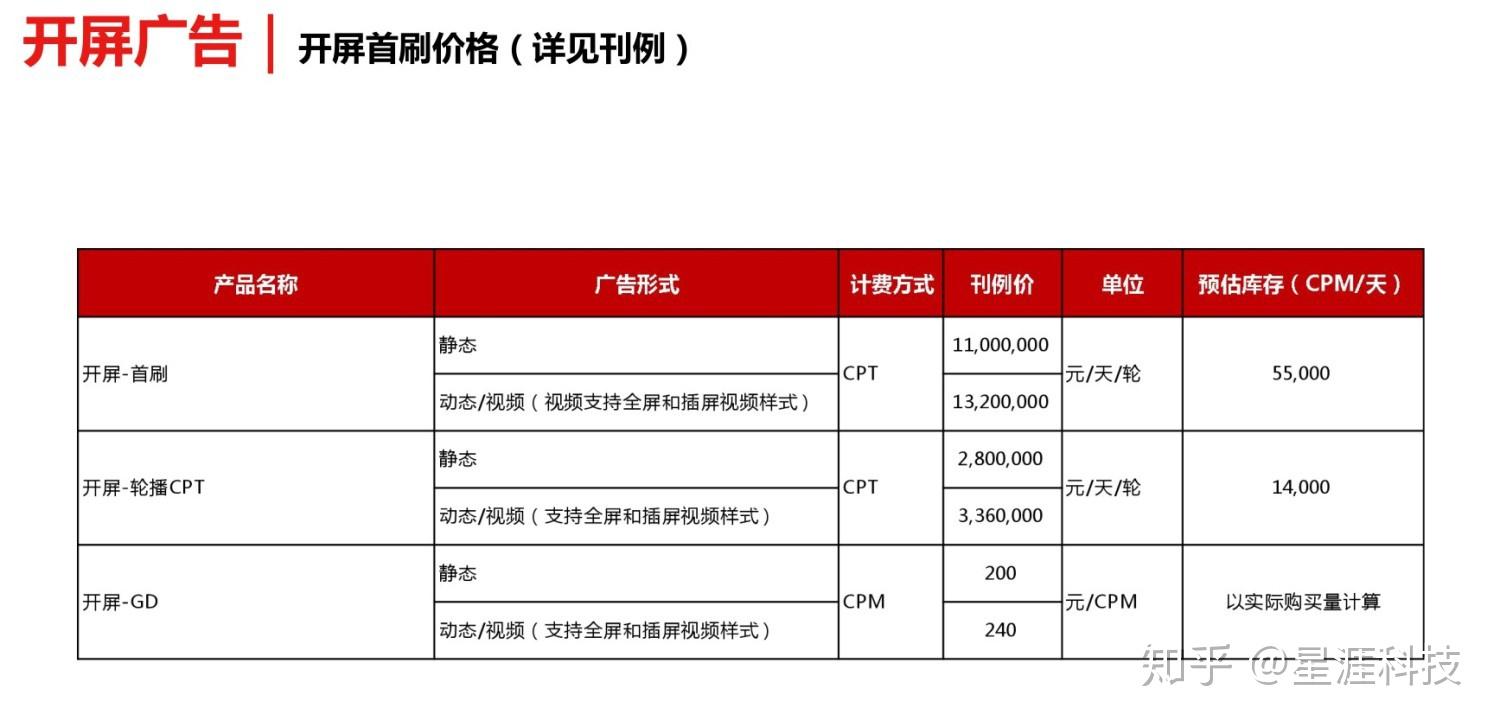 14、今日头条广告是基于其强大的人工智能算法,充分整合今日头条内涵段子西瓜视频以及知名厂商及媒体资源,为广告主提供的一个优质的营销平台主要有开屏广告信息流广告详情页广告三种形式开屏广告应用开启时加载,展示固定时间静态3秒动态4秒视频5秒,展示完毕后自动关闭并进入应用主页面,按CPM计费信息流广告在今日头条的资。