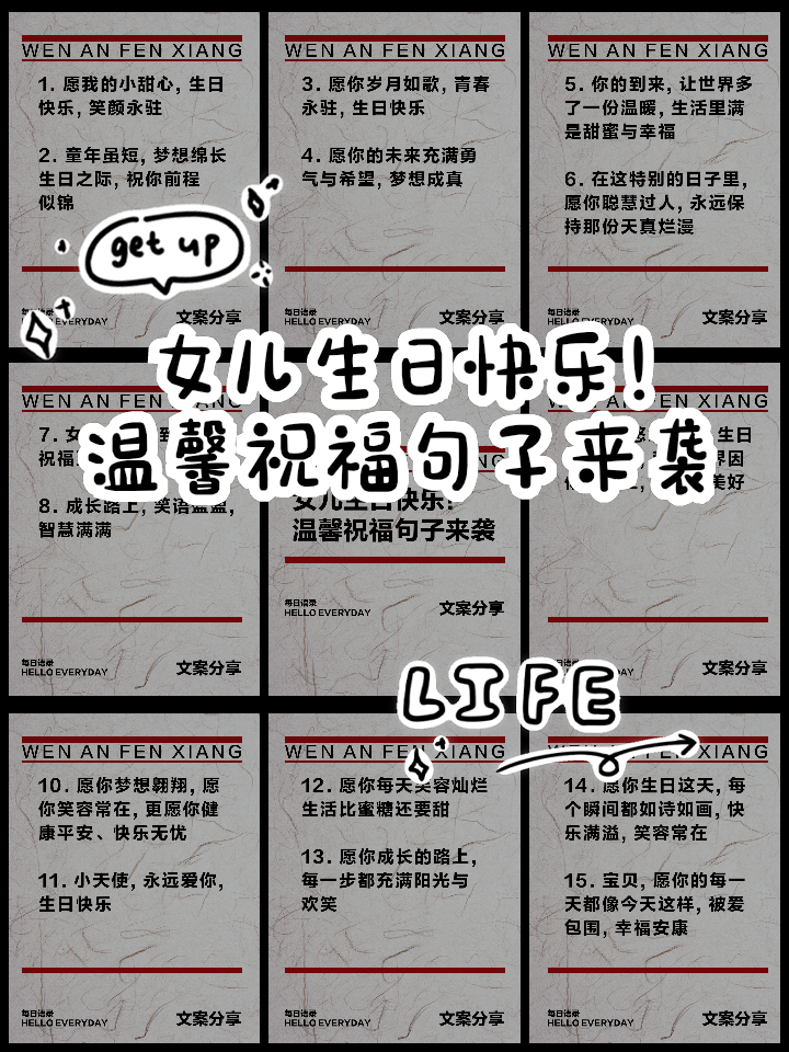 “#我的宝贝,生日快乐愿你眼中有星辰,心中有暖阳,每一天都活得光芒万丈~”此祝福语以“星辰”和“暖阳”为意象,既表达了对女儿未来充满希望的美好期许,也传递了希望她内心温暖生活充满光明的祝愿整体语言简洁且富有诗意,适合表达对女儿的疼爱与祝福“亲爱的女儿,生辰快乐愿岁月。