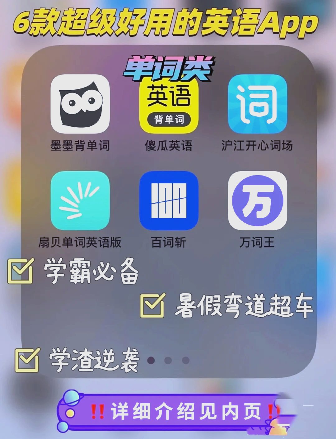 以下是一些适合初中学生的软件推荐,涵盖英语口语理科学习其他学习及家长监护等多个方面英语口语学习类咕噜口语SpeakGuru专为初中生设计的AI口语学习系统,全球用户超700万,99%用户给出5星好评,苹果商店评分常年49其核心功能包括游戏化任务机制免费下载及大量免费功能覆盖全球英语口音;初中生学英语,以下这些软件都是不错的选择哦VOA常速英语这款APP就像你的英语学习小伙伴,一边看新闻一边就把听力阅读和词汇量都提升了,学习从此变得轻松又有趣有道词典海量词汇在手,英语学习不愁超过125万条英汉词汇,2300万例句,遇到生词随时查,还能学到更多地道用法百词斩网红背单词;特点可可英语提供了大量的英语听力材料,包括新闻电影片段音乐等,帮助用户提高听力水平同时,它还提供了单词背诵功能,让用户可以随时随地背诵单词,加深记忆此外,可可英语还有模拟考试功能,让用户可以检验自己的学习成果2 阿卡索APP 简介阿卡索APP是一款高效的学习APP软件,它支持用户在观看;中学生学习英语的软件有如下一些1初中英语宝 是一款很便捷的初中英语学习软件,涵盖了初中三年所有的英语教材,适配各种版本教材,还可以细致地学习阅读听力写作等,帮你迅速提高英语2酷听说 是一款为初中生打造的英语听力口语训练神器不仅能利用先进的语音评分系统给学生打分,还能从根源上帮;2 阅读学习软件 新概念英语APP新概念英语是英语学习的基础教材,其APP提供了系统学习的资源,有助于加深理解和记忆 轻听英语该软件不仅提供阅读材料,还结合了听力训练,使学习过程更加全面3 听力训练软件 虽然没有特别指出某一听力软件,但可以选择具有专业听力训练功能的软件,如轻听英语;4 CHINA DALIY 如果英语水平比较差,看洋葱有些吃力不妨考虑下CHINA DALIY,中国日报这是中国日报的英文客户端,每天提供高质量的英语新闻和资讯里面所有内容,基本都是中国人写的,比较容易看懂适合英语学习的初级选手,比如初中生高中生5BBC新闻 如果觉得CHINA DAILY上的英文太简单,不太;初中生学英语可以选择以下几款软件1 VOA常速英语 简介一款在看新闻的同时能全面提升听力阅读能力和词汇量的APP 特点氛围轻松,适合在休闲时间学习英语,同时了解国际新闻2 有道词典 简介一款拥有海量词汇的APP,超过125万条英汉词汇,2300万海量例句 特点方便查询单词,了解单词的详细;特点更新速度快的VOABBCCNN News等英语广播资源,以及四六级考研托福雅思等资料,还包括全套的新概念教材,适合初学者进行全方位的英语学习英语流利说 特点口语模仿类APP,苹果应用商店推荐软件,提供多种口语练习场景,帮助初学者提高英语口语能力英语趣配音 特点可以跟着英语歌曲电影电视剧。
