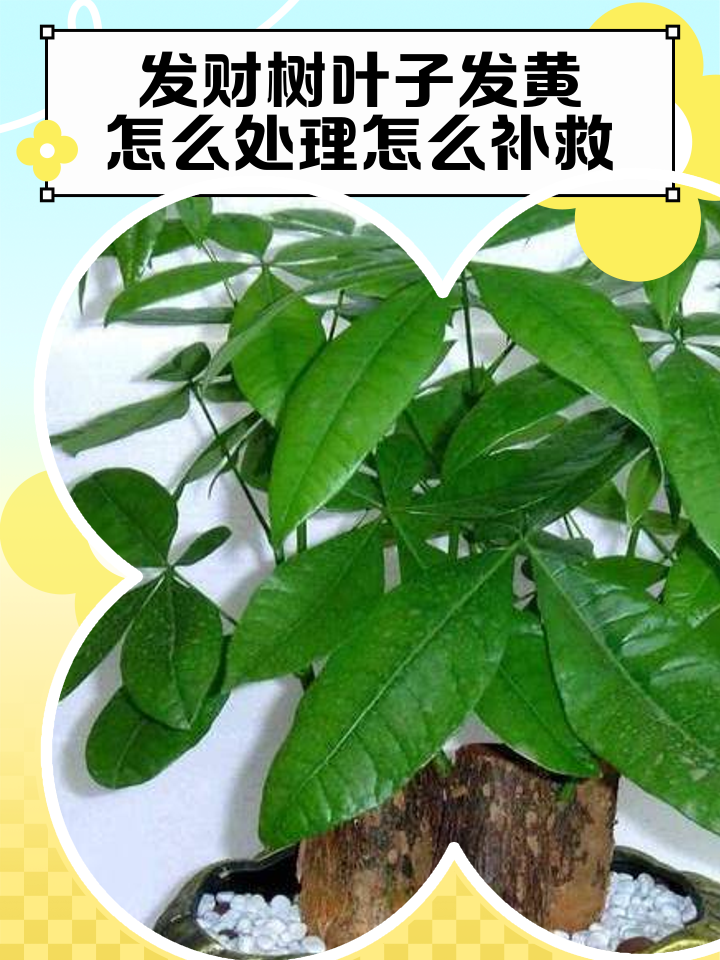 一晾干花土 1原因发财树喜湿,但是并不耐湿涝如果养它的时候,浇水的次数太多,它的花土之中就会出现积水,导致它受涝,进而引发叶子变黄变干等问题2处理方法把它从盆中取出,剪掉腐根以及枯黄的叶子再把它栽种到新土中,慢慢养护二增加施肥 1原因它在生长季的时候;你好你的发财树是五个辨的那种,如果你用手一推就会晃动,这就需要你首先把树桩给固定住,也就是把周围的花土给捣实不要让树桩晃动,这是第一步还有你说叶子发白干枯了,这样的叶子和枝条都可以剪掉,可以统一的修剪成一个高度,这样利于它再次发叶以后的整体形状发财树的养护要领就是盆土干透。