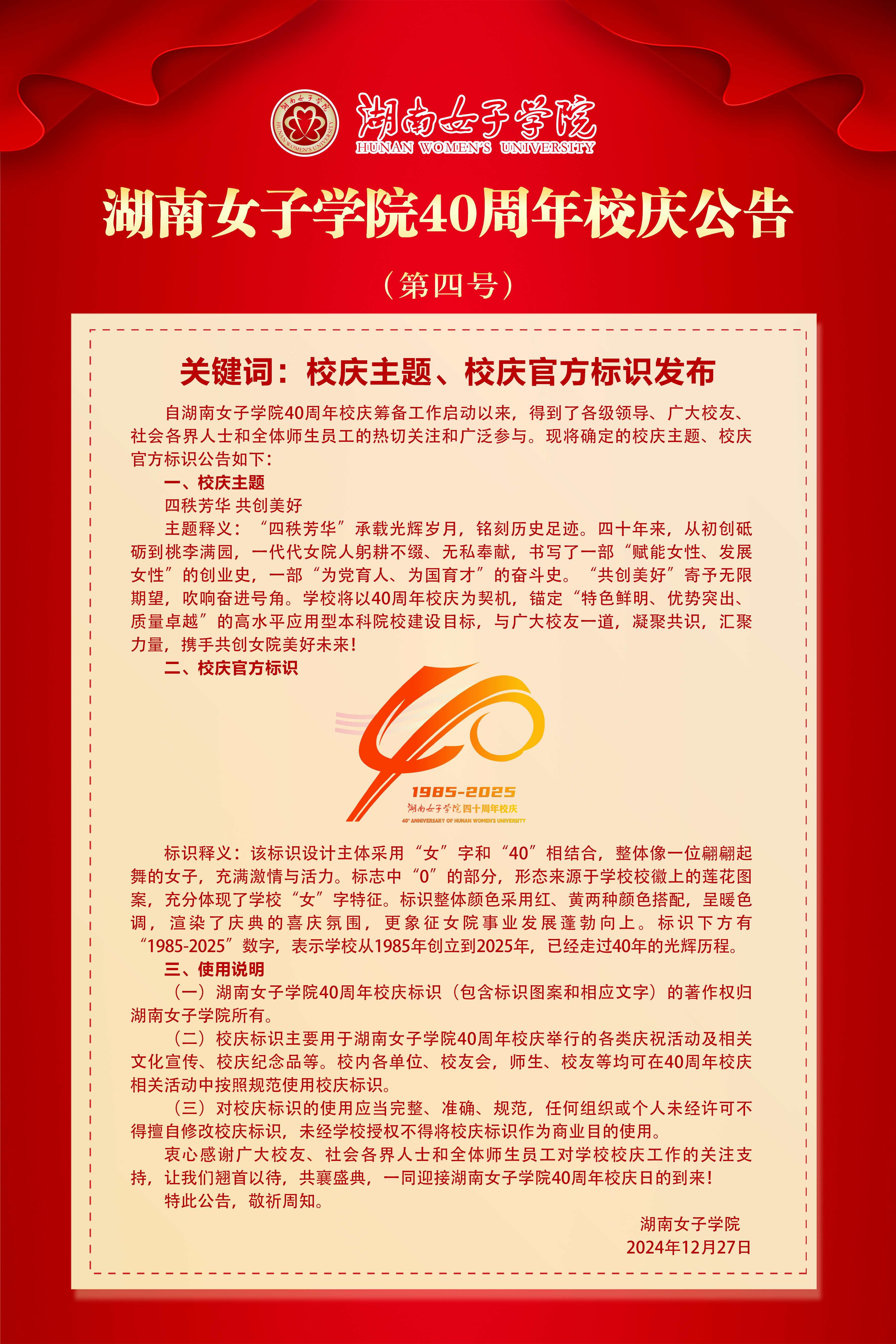 3、正确名称为“湖南女子学院”,它是全日制公办普通本科院校,以下是其简介基本概况该校创办于1985年,前身为湖南女子职业大学,2010年升格为本科院校并更名,2021年获批湖南省硕士学位授予立项建设单位学校位于湖南省长沙市中意一路160号,占地面积597亩,毗邻德思勤商圈,交通便利它是新中国成立后第一;湖南女子学院是新中国成立后第一所公办全日制女子普通高校,全国三所独立设置的女子普通本科高校之一以下是学校的详细介绍历史沿革创办于1985年,前身为湖南女子职业大学,2010年经教育部批准升格为本科院校,更名为湖南女子学院,2021年获批湖南省硕士学位授予立项建设单位办学理念与宗旨秉承“懿德睿;湖南女子学院和竞男女子学院为湖南女性提供了优质的教育机会,促进了女性教育事业的发展学院注重培养学生的综合素质,不仅关注学术知识的传授,还重视学生的实践能力和创新思维的培养通过丰富多彩的校园活动和社会实践活动,学生们能够更好地融入社会,实现个人价值两所女子学院的存在,不仅为湖南的女性;1学校简介湖南女子学院是经中华人民共和国教育部批准的全日制女子普通高等本科院校,是新中国成立后第一所公办全日制女子普通高校,全国三所独立设置的女子普通本科高校之一,全国妇联与湖南省人民政府共建高校,是世界女子教育联盟成员中国女子高校联盟成员中国高校众创空间联盟成员学校创办于1985年的湖南。
