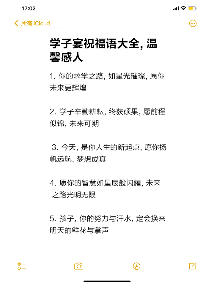 13、46家长答谢词各位亲朋各位老板们 47功成名就 通才硕学 更进一步鹤立鸡群 学业有成 朝气如虹喜气盈门 首屈一指 金榜题名 48思念深深,情谊真真,祝福连连,幸运相伴,短信飞飞,问候袭击,一份祝福,愿你十全十美日万事顺心 49朋友的女儿升学宴祝福语美好的大学生活开始了,祝你在学业上有所斩获,在学。