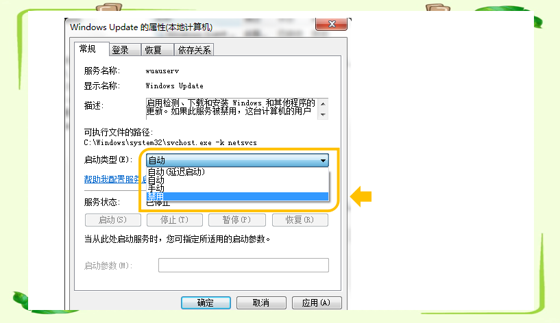 双击该选项打开其属性窗口,在“启动类型”下拉菜单中选择“禁用”,然后点击“应用”和“确定”按钮此方法通过禁用系统自带的更新服务来阻止自动更新,适用于大多数Windows系统版本,操作简单直接,但需注意后续若需更新系统,需手动重新启用该服务使用组策略编辑器关闭同样先按Win + R打开运行窗口,输入。