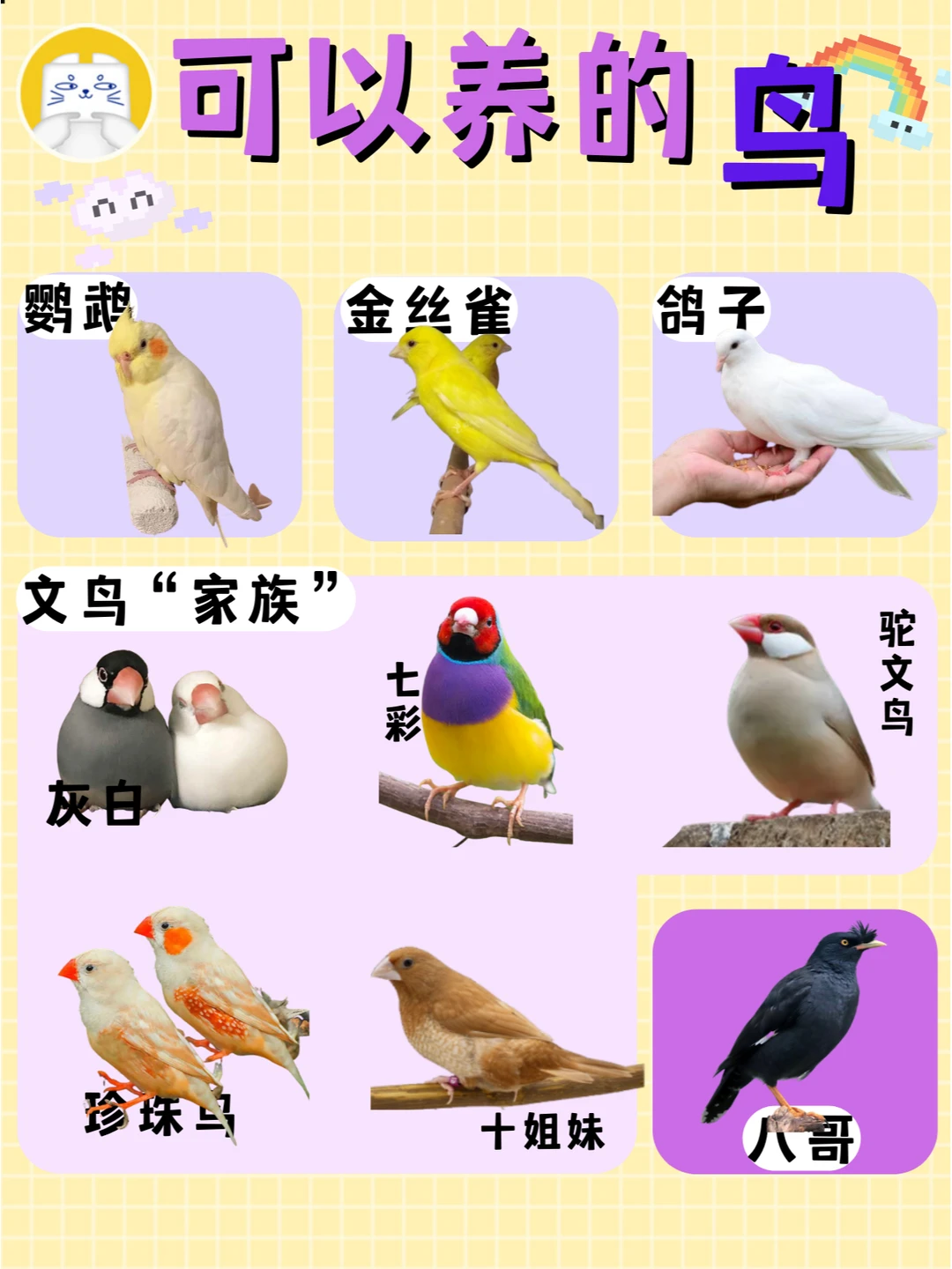 1燕子Swallow学名家燕,是雀形目燕科74种鸟类的统称形小,翅尖窄,凹尾短喙,足弱小,羽毛不算太多羽衣单色,或有带金属光泽的蓝或绿色大多数种类两性都很相似燕子消耗大量时间在空中捕捉害虫,是最灵活的雀形类之一,主要以蚊蝇等昆虫为主食,是众所周知的益鸟2杜鹃属学名。