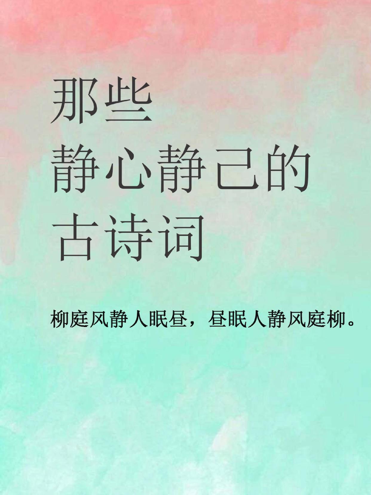 13月下江流静,村荒人语稀出自唐·钱珝江行无题一百首14那知石上喧,却忆山中静出自唐·皇甫曾山下泉15晚年唯好静,万事不关心出自唐·王维酬张少府16独立三边静,轻生一剑知出自唐·刘长卿送李中丞之襄州17山列千重静,河流一带明出自唐·无名氏日暮。