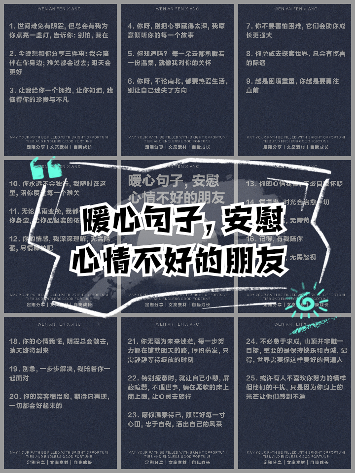 以下是一些可以安慰好朋友分手后的暖心句子生活总有起伏生活中有沟就会有坎,有挫折就会有打击凡事淡然些,想开些,看开些,烦事自然会云开雾散,生活自然会无限美好学会接受离别相遇总是猝不及防,而离别多是蓄谋已久总有一些人会慢慢淡出你的生活,你要学会接受而不是怀念未来依然美。