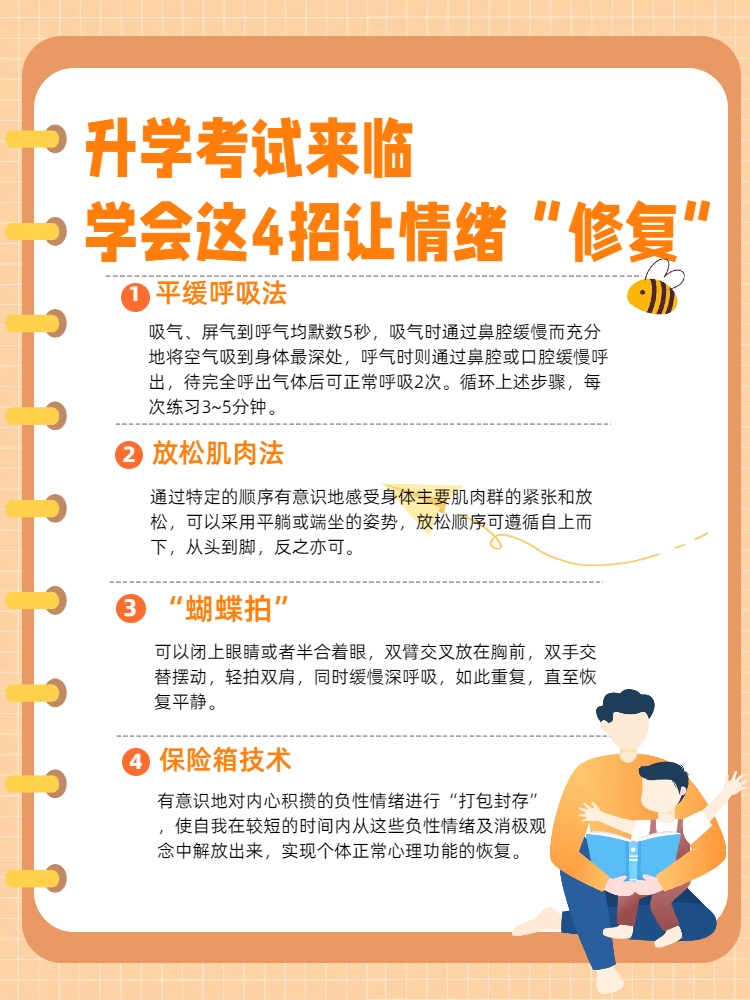 进行心理调适家长可以适当给孩子减压,通过带孩子进行体育锻炼听音乐等方式来缓解孩子的紧张焦虑情绪鼓励孩子以平常心对待考试,将考试视为检验学习成果的一次机会,而非决定命运的唯一标准通过以上措施,家长可以帮助孩子有效缓解考试前的紧张情绪,让孩子以更加轻松自信的心态面对考试。