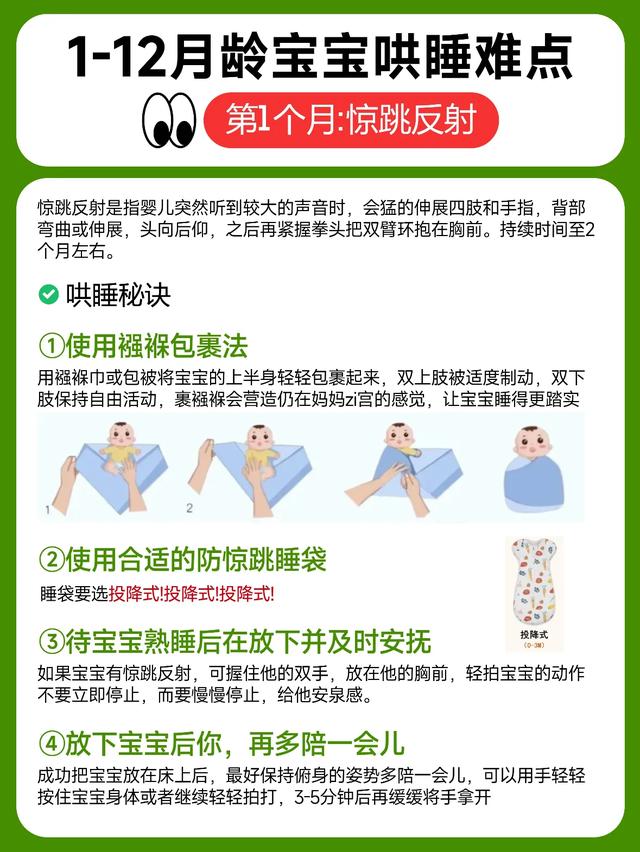 ◦ 宝宝难入睡时,可抱拍至有困意再放下,勿等睡着后放;若放下大哭,需反复抱拍至困意再放,帮助宝宝适应自主入睡。