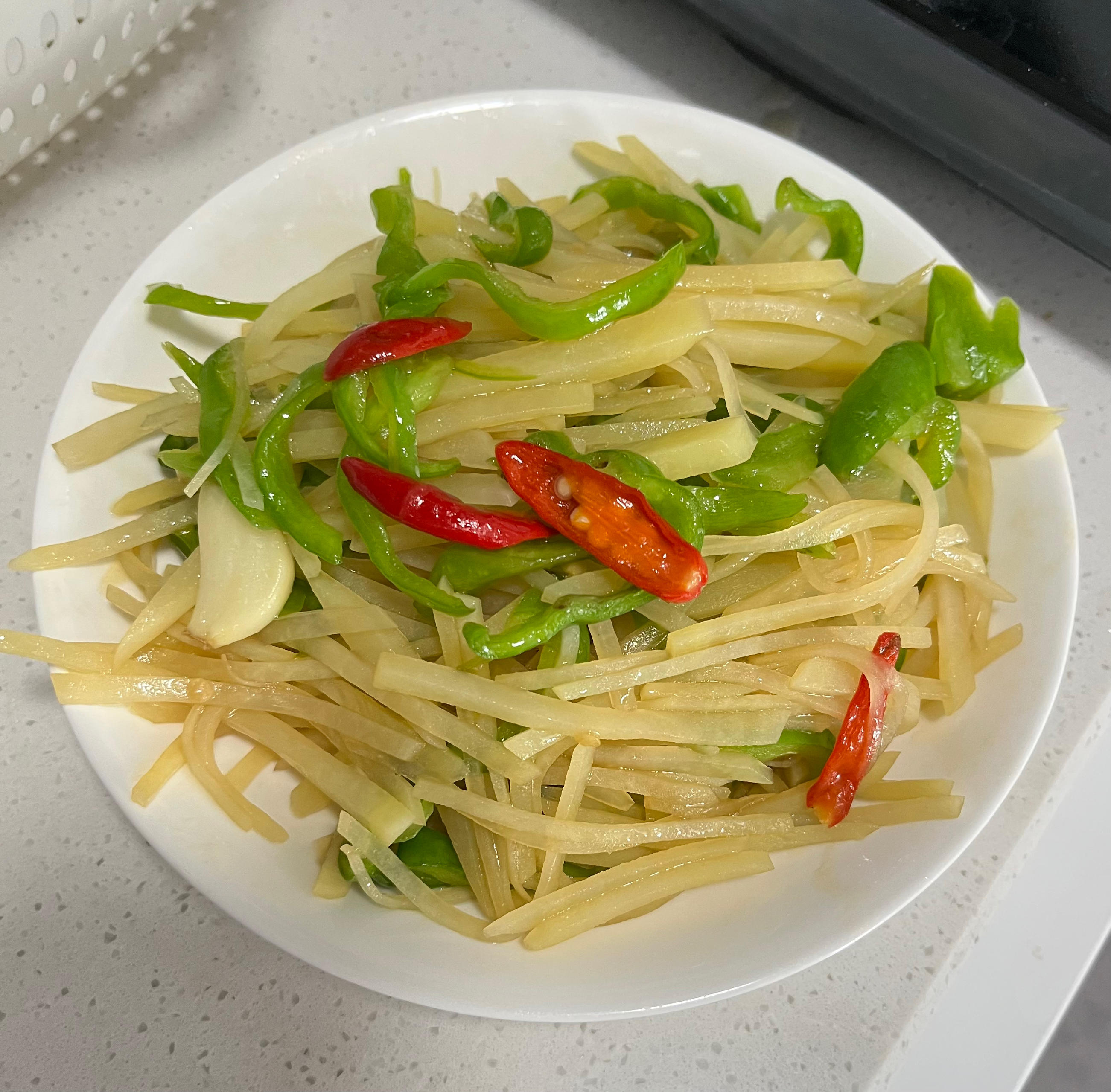 使其稍微软化接着加入土豆丝,大火快速翻炒1分钟,以保持土豆丝的爽脆口感调味根据个人口味加盐,用以调味加入适量的醋,醋不仅能提升土豆丝的口感,还能增加食欲翻炒均匀,确保每一根土豆丝都裹上调料按照以上步骤炒制出来的土豆丝,口感爽脆,味道鲜美,是一道简单又美味的家常菜。