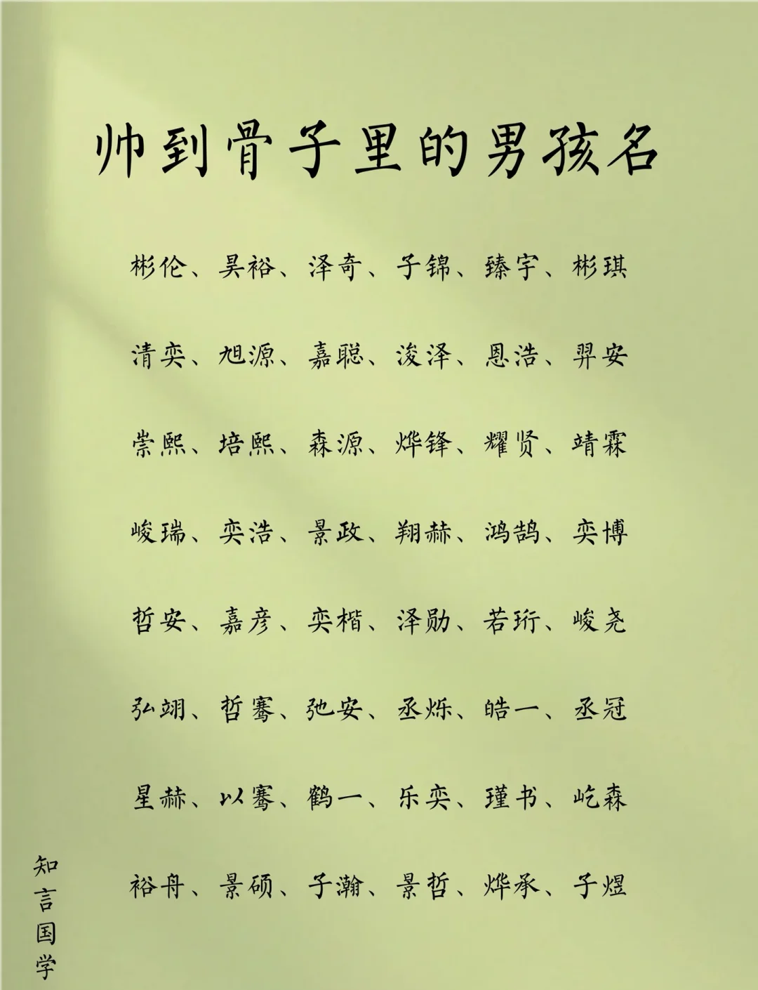 1珂琛,代表玉的“珂”字,是一个中性字“琛”也是表示着珍宝和玉的意思这两个字都是“王”字旁的字,而“王”这个字单看就是代表着王权,而握有王权的人是非常具备责任感的,是具备沉稳性格的,所以此名字体现了男孩沉稳的性格,就如大律师何以琛一样2承栩,“承”字的本义就代表;“弦”虽然是个很常见的字,但很少有人直接将其作为名字,用此单字给男孩起名,不管搭配什么形式,感觉都是很独特个性的该字在人名中有目光敏锐才思敏捷的寓意壹 该字是数目“一”的大写,直接用来给男孩起单字名字非常个性,很少有人单独使用而且寓意内涵也比较好,有第一的意思,指。