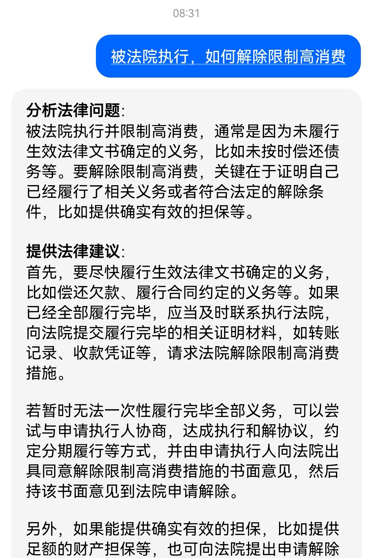 5、因此,被限制高消费不会自动解除,而是需要根据具体情况进行恢复如果是征信黑名单,需要还清欠款并等待五年或提前申请征信异议如果是失信黑名单限高令,则需要履行完判决书确定的义务或与申请执行人达成和解请注意,以上信息仅供参考,具体情况可能因地区和具体案件而有所不同如有需要,建议。