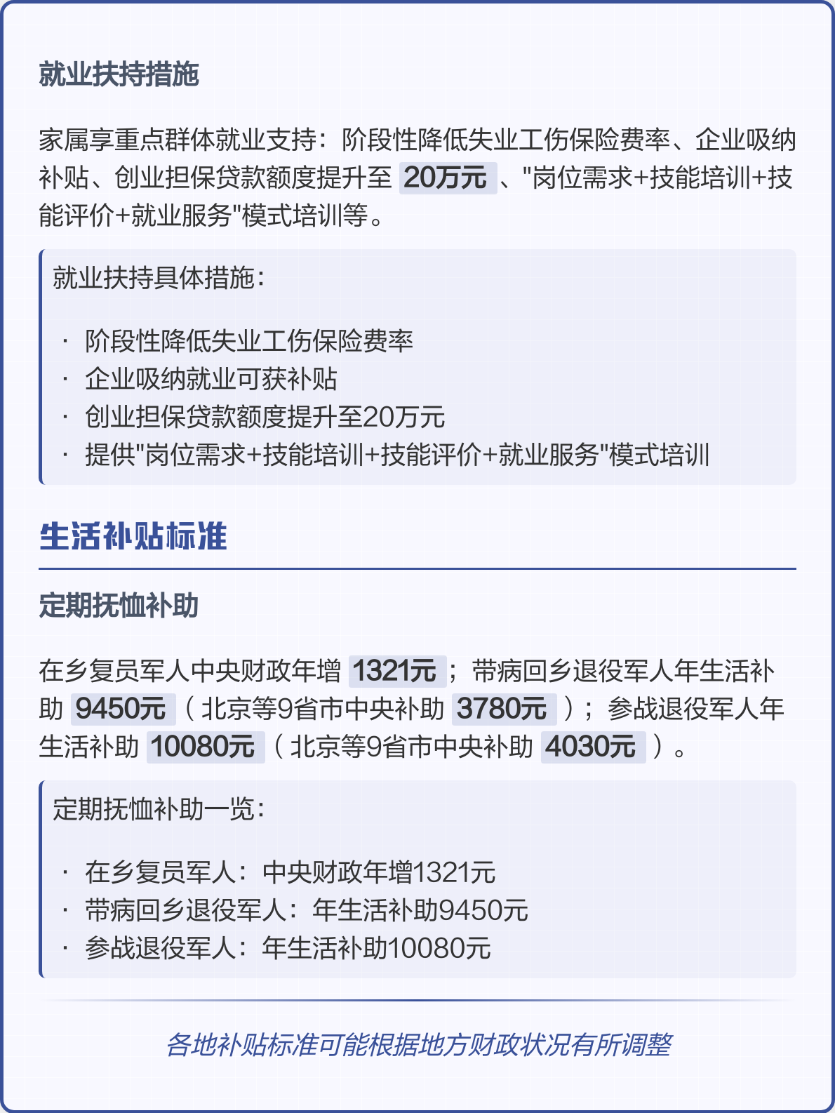 11、元年这一政策有助于保障遗属的基本生活需求,体现社会对军人家庭的关爱具体的补助标准和申请流程可能因地区政策差异而异建议家属咨询当地民政部门或退役军人事务部门,了解详细情况并办理相关手续。