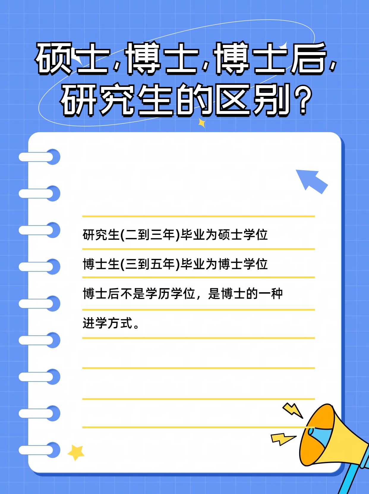 博士与博士后的核心区别在于身份性质与导师的关系研究领域及待遇福利等方面,具体如下身份与性质 博士是学位称呼,代表最高级别的学术学位,标志个人具备原创理论成果的能力攻读博士学位者以学生身份在校学习,通过课程研究及论文答辩获得学位博士后并非学位,而是博士毕业后的一种工作或半工作性质的经历博士后研究;是一种学术或工作经历在博士后阶段,研究者会进一步深入某一特定领域进行更加深入的研究或科研工作这一阶段对于提升研究者的学术水平和职业发展至关重要以上就是研究生博士硕士博士后之间的关系每个阶段都有其特定的任务和目标,它们共同构成了高等教育中的学术研究体系。