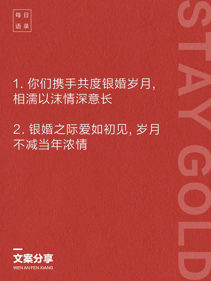 银婚的含义不仅仅是夫妻间长时间的陪伴和相守,更代表着彼此间深厚的感情基础和相互扶持的坚定决心在这个特殊的纪念日里,夫妻通常会共同回忆过去的点点滴滴,感慨彼此间的相知相守,并展望未来的美好时光银婚的庆祝方式多种多样,夫妻可以选择旅行举办小型聚会或者互赠礼物来共同纪念这个重要的日子无论是哪种方式,最重要的是能够让。