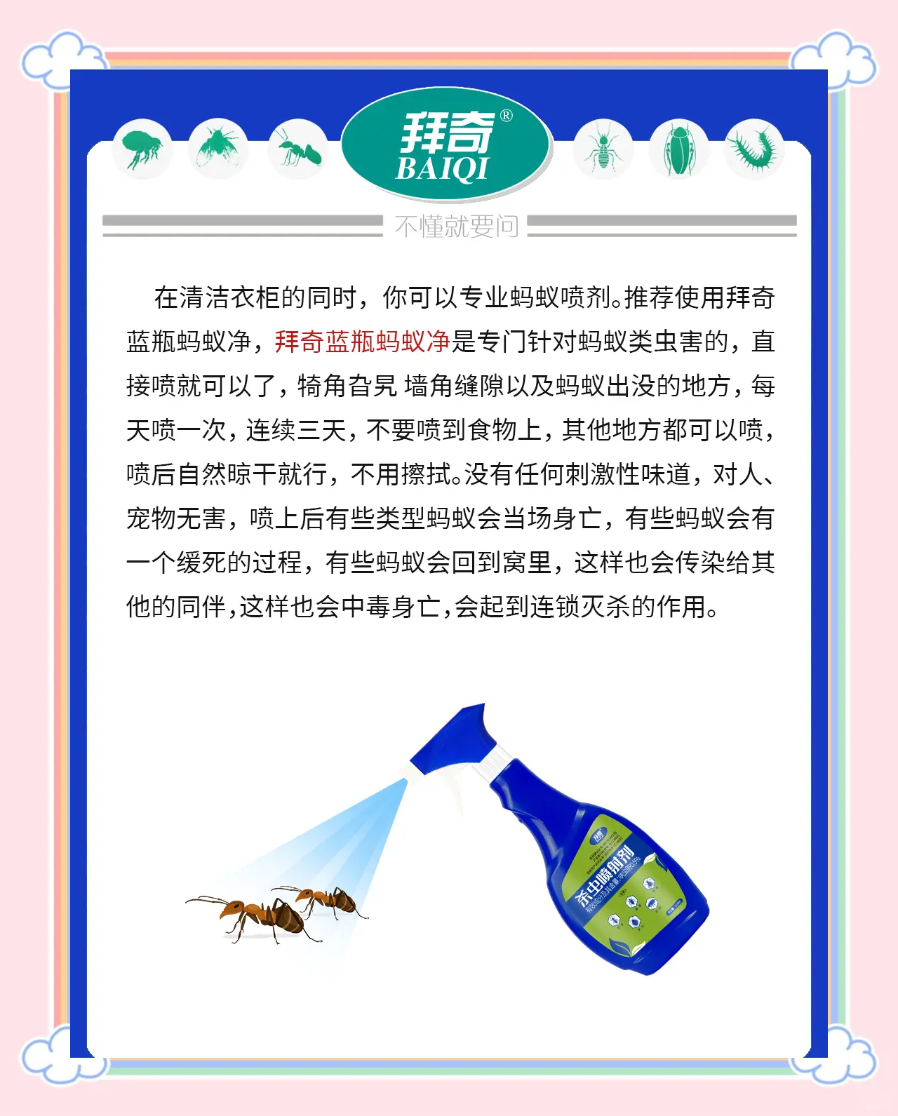 去除蚂蚁最有效的方法涵盖化学防治物理驱赶及日常预防,可按需选择化学防治能快速灭杀蚂蚁达尔森杀虫粉剂利用“连锁灭杀”原理,工蚁会携带药粉回巢,进而毒杀整个蚁群,药效可持续15 20天,且安全无刺激,适合有宠物或儿童的家庭,只需沿蚁路或巢穴撒施即可灭害灵杀虫气雾含氯氰菊酯,有速效触。