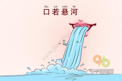 6、“口若悬河”形容人能言善辩十分健谈,讲起话来像瀑布一样滔滔不绝具体解析如下词源与释义“悬河”本指瀑布,成语整体意为说话如瀑布倾泻般流畅不绝其核心含义包含两层能言善辩强调逻辑清晰论证有力,如郭象对老庄学说的深刻阐释健谈滔滔突出表达时的持续性与感染力,如王衍所述“注。