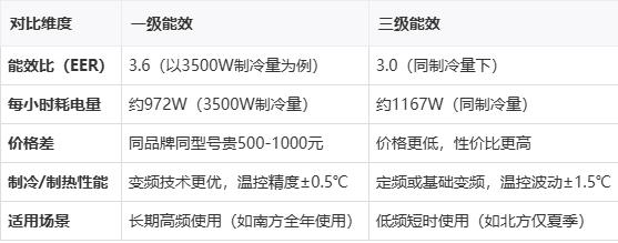 1能效比不同一级在34以上,二级在32到339之间二者消耗同样的电力获取的制冷量却不相同一级能效的空调每消耗一瓦特的电力,就可以获取超过35瓦特的制冷量而二级能效的空调每消耗一瓦特的电力,获取的正能量制冷量则低于35瓦特2省电效果不同一级能效代表着空调的节电能力已经。