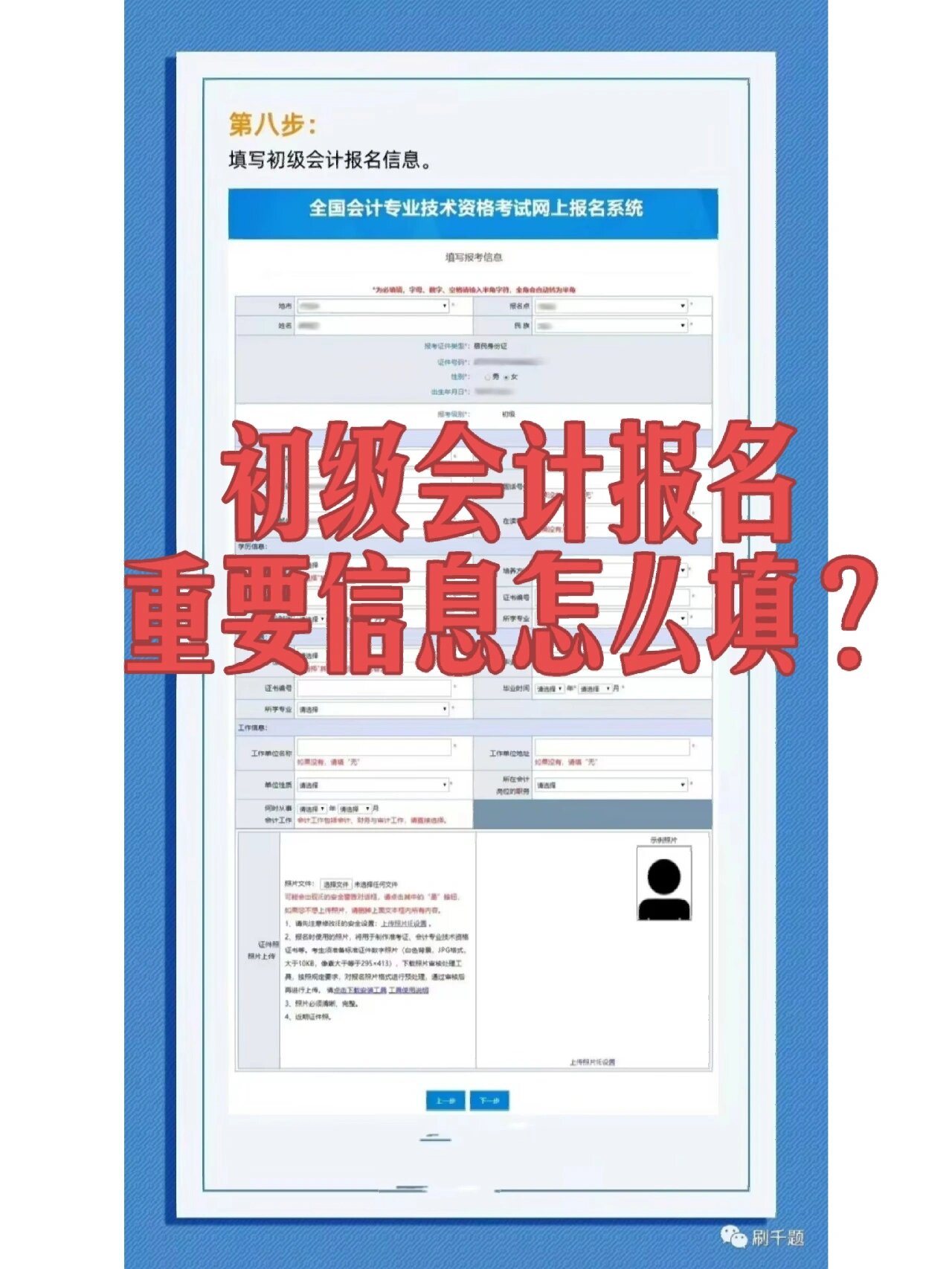 1基本信息填写 对于初级会计考生基本信息填写,考生只要保证信息真实有效认真填写就可以了其中报名表下方“电话号码”需考生正确填写并牢记,一旦遗忘登录密码将要凭所设置电话号码找回还要特殊说明的是报名表中“地市”和“报名点”的填写“地市”是指报考人员选择考场所在的行政区,而“报名点”;初级会计基础信息的填写方法如下个人信息确保提交的信息真实有效,包括姓名性别身份证号码等,这些信息将用于身份验证和考试管理电话号码必须正确填写并牢记电话号码是找回登录密码的重要途径,也是接收考试相关通知的关键联系方式地市选择考场所在的行政区考生应根据自己所在的位置或期望的。