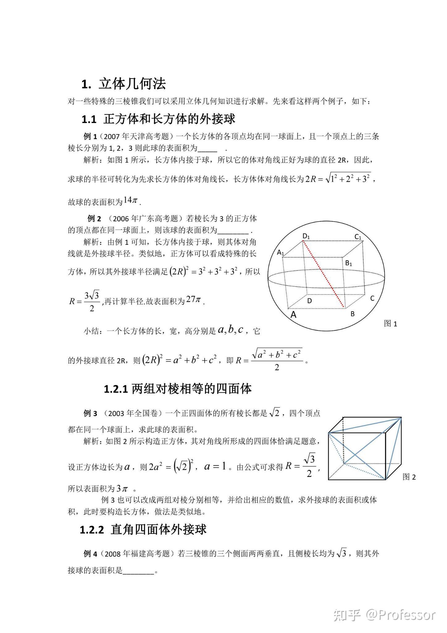 1正三棱锥的外接球半径求法设A-BCD是正三棱锥,侧棱长为a,底面边长为b,则外接球的球心一定在这个三棱锥的高上设高为AM,连接DM交BC于E,连接AE,然后在面ADE内做侧棱AD的垂直平分线交三棱锥的高AM于O,则0就是外接球的球心,AO,DO是外接球的半径当三棱锥的侧棱与它的对面所成的。