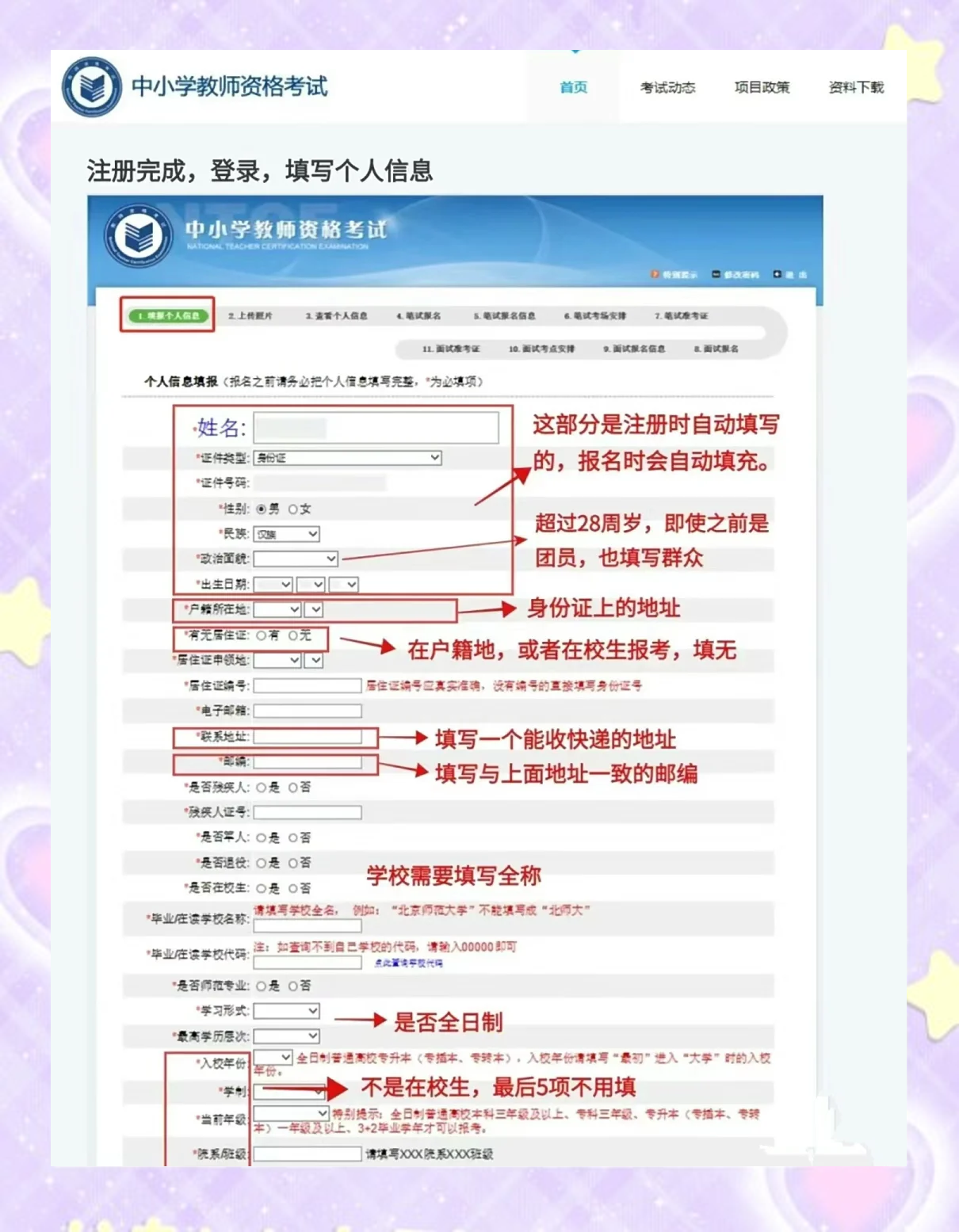 初中教资面试报名的整体流程如下报名资格确认仔细阅读面试公告首先需要仔细阅读对应省份的面试公告,确认自身是否符合报名条件确认个人资格根据公告要求,核对个人学历专业年龄等是否符合报名标准网上报名填写报名信息在规定时间内登录指定的报名网站,填写个人信息和报考科目等提交报名材料按照要求上传个人照片。