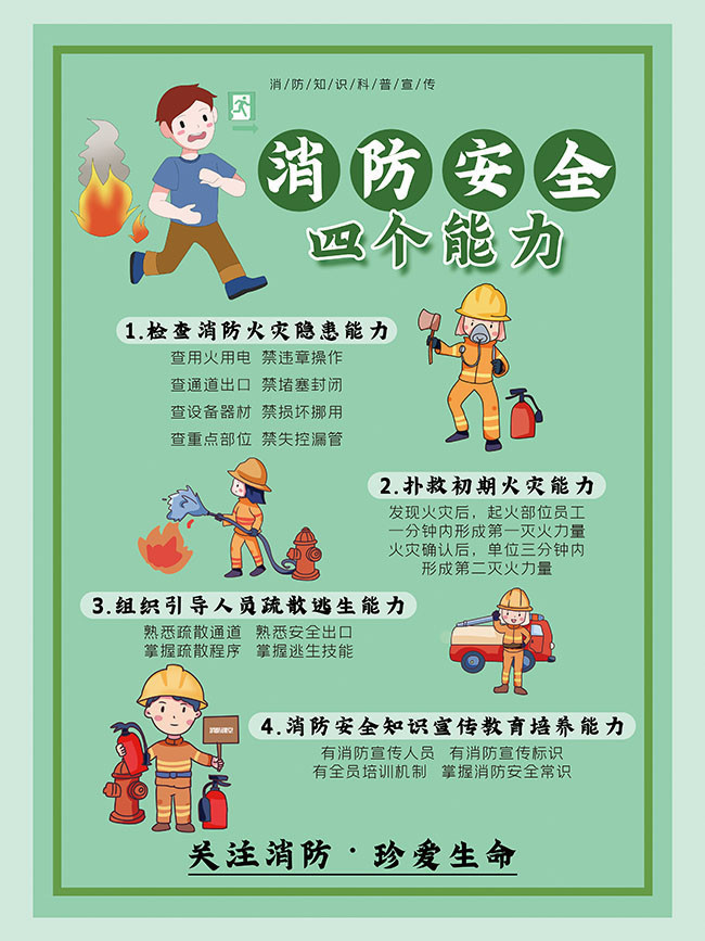 消防安全知识内容主要包括以下几点报警知识记清119及时准确拨打119火警电话燃气使用安全安全使用液化气经常检查,保持警惕燃气泄漏处理迅速关闭阀门,开窗通风,切勿拨打电话或使用明火家中物品存放避免存放危险品不存放易燃易爆品及危险品装修与防火慎选装修材料选择防火性能好的。