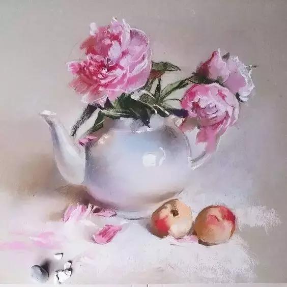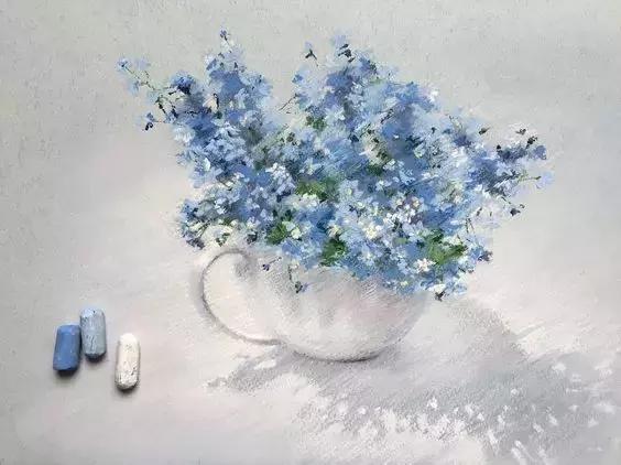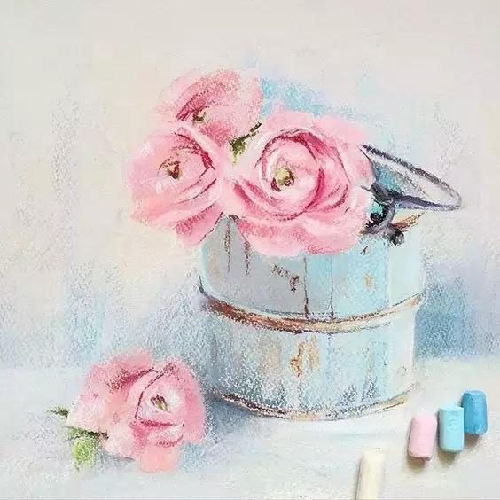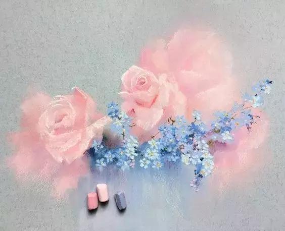 这样的花,是用粉笔画的,简直不敢让人相信,花朵的形体明暗,只能用一个美字来形容