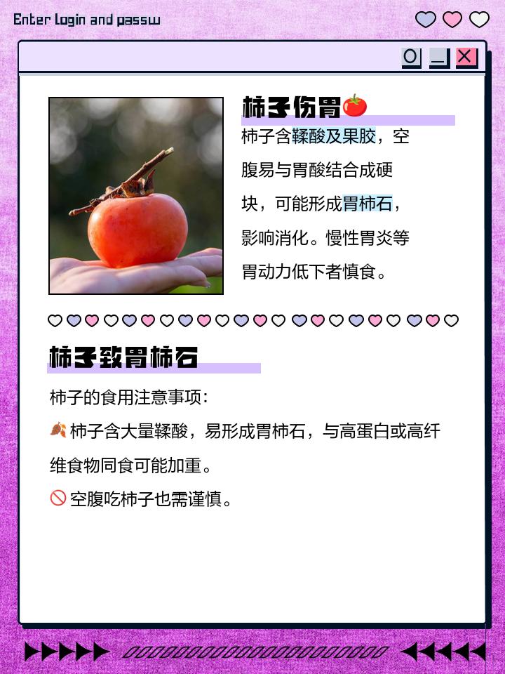 然而,脆柿子的消化性较差,因其质地坚硬,碳水化合物含量较高,但其他营养成分较少,过量食用可能导致消化不良同时,脆柿子中的鞣酸会与食物中的钙锌镁铁等矿物质结合,形成难以被人体吸收的化合物,影响这些矿物质的吸收利用,长期大量食用可能引起矿物质缺乏柿子的食用人群需注意以下几点糖尿。