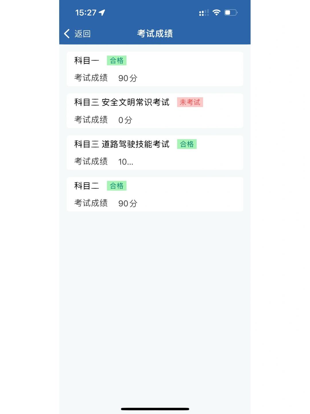”,如下图所示2在打开的软件页面中,找到下面的选项“考试预约”,如下图所示3选择科目一,进去后勾选阅读协议,就可以进去页面选择考场4预约受理后可以显示,可以去“网办进度”里查看通过没有,如下图所示就完成了;在首页点击“更多” 2然后点击“考试预约”,预约你想查询的科目 3如果已经通过考试,则会显示“该科目已考试合格,无需预约”如下图可以预约科目三考试,则说明科目三考试没过,如果可以预约科目二考试。