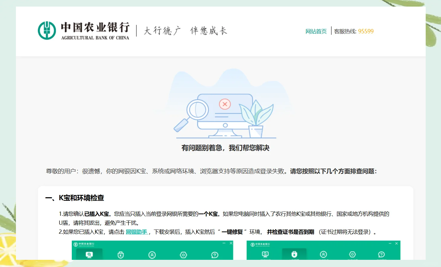 农行K宝密码遗忘后的解决方法如下1 前往银行柜台重置密码K宝密码有6次输入机会,若全部输错会被锁定此时需卡主本人携带开卡证件如身份证及银行卡,前往就近的农业银行任意网点办理补办证书业务柜台工作人员会协助重置密码,此方法安全可靠,但需注意银行营业时间及排队等待2 通过K宝证书管理。