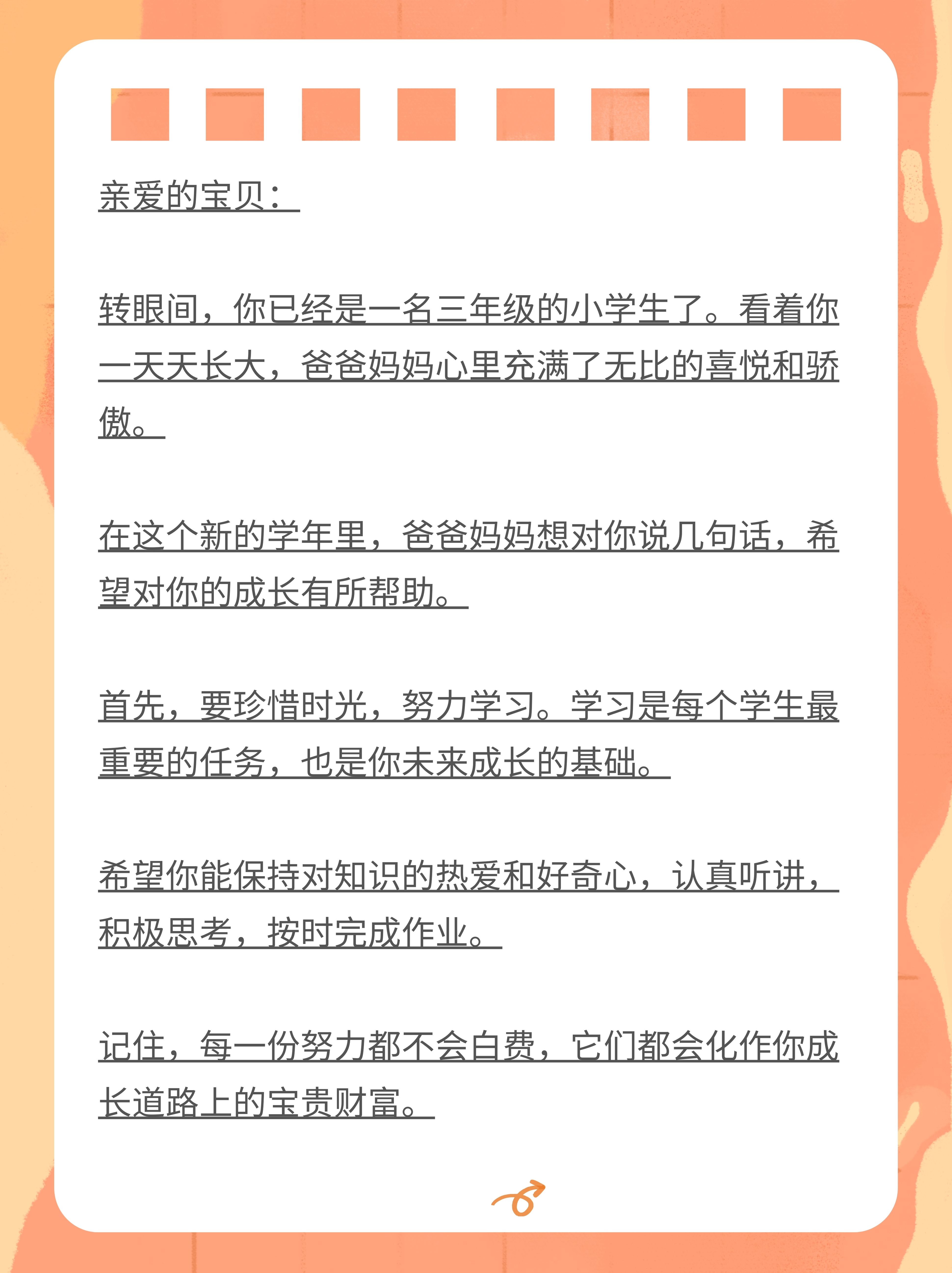 转载请注明来自德立,本文标题:《父母对孩子的简短寄语一年级列述》